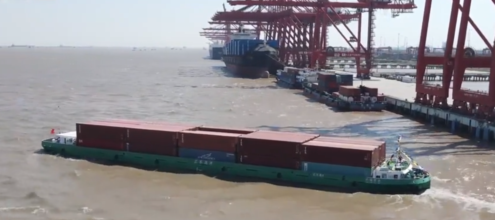內(nèi)貿(mào)海運(yùn)首航!我國首艘純電集裝箱船下水