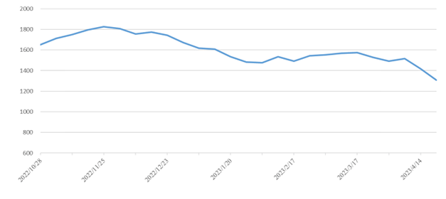 市場需求偏弱,本期(2023年4月15日至4月21日)中國內(nèi)貿(mào)集裝箱運(yùn)價指數(shù)持續(xù)下跌