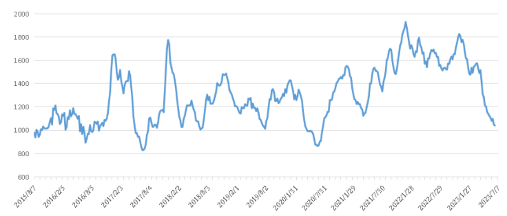 本期2023年7月1~7日中國內(nèi)貿(mào)集裝箱運(yùn)價(jià)指數(shù)(XH·PDCI)小幅下滑